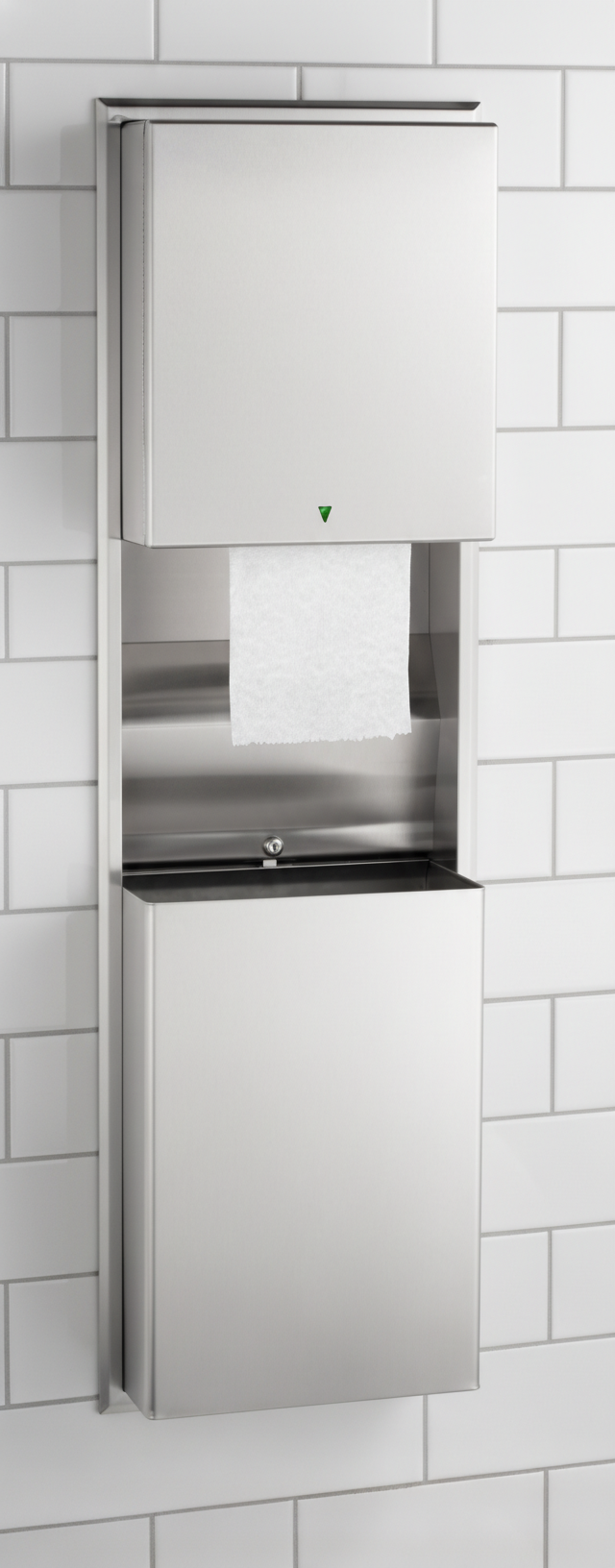 Published 02/13/2026. Size: 640 × 1632 in Bobrick B-3974 ClassicSeries® Recessed Convertible Automatic, Universal Roll Towel Dispenser Equipped with Intuitive LED Light/Waste Receptacle